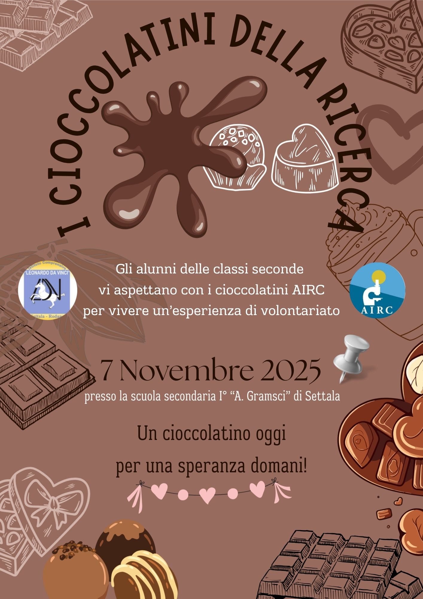 Venerdì 7 novembre 2025 gli alunni delle classi seconde della scuola secondaria di primo grado di Rodano e di Settala sono stati impegnati nella distribuzione dei “Cioccolatini della ricerca" AIRC il cui ricavato è stato devoluto interamente a sostegno della ricerca per la lotta contro il cancro.